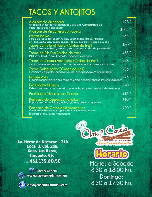 Welcome to Clavo y Canela, an exceptional dining experience located in the heart of Irapuato. This charming eatery offers a menu bursting with traditional Mexican flavors and contemporary twists, creating the perfect backdrop for any meal.